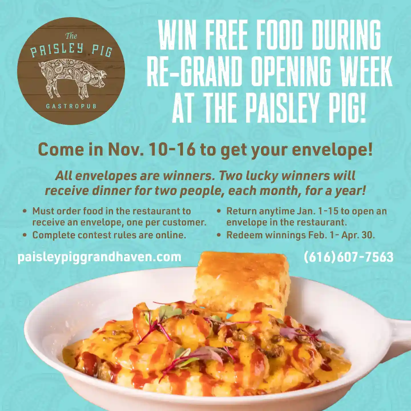 For over 8 years, The Paisley Pig has been Grand Haven’s go-to spot for families, friends, and food lovers. Known for our creative gastropub menu, craft cocktails, and welcoming atmosphere, we bring people together to enjoy everything from pizza and burgers to local beers and wines. Whether it’s a casual meal, a special night out, or a celebration, we’re proud to be part of the Grand Haven community.